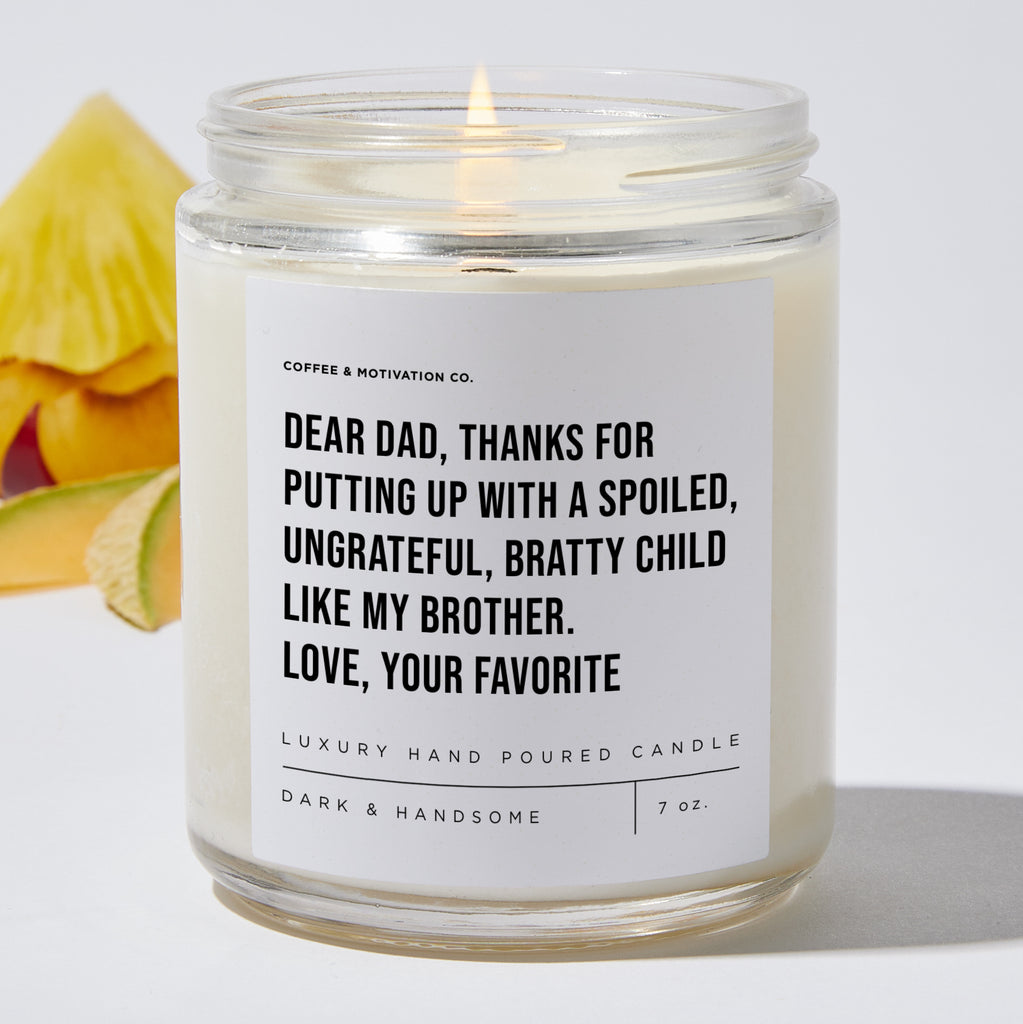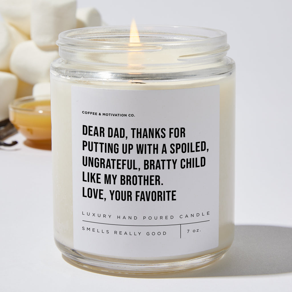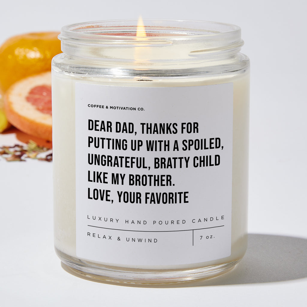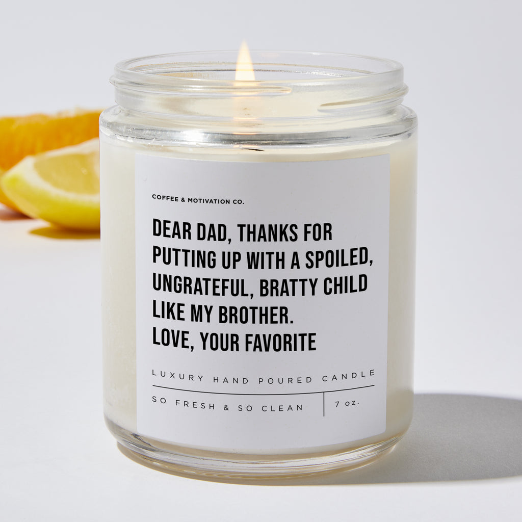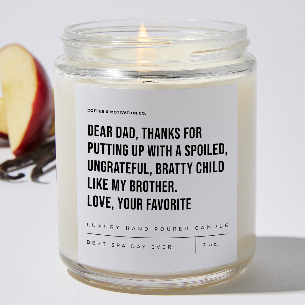 Dear Dad, Thanks For Putting Up With A Spoiled, Ungrateful, Bratty Child Like My Brother. Love, Your Favorite - Luxury Candle Jar 35 Hours