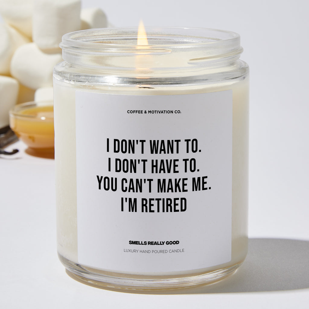 I Don't Want To. I Don't Have To. You Can't Make Me. I'm Retired - Retirement Luxury Candle