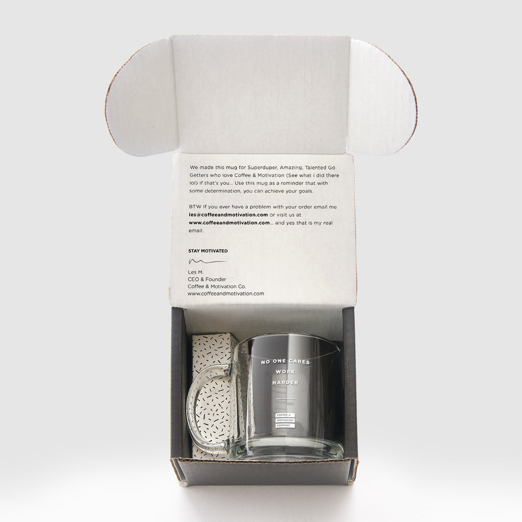 No One Cares Work Harder - 13oz Double Wall Motivational Glass Coffee Mug