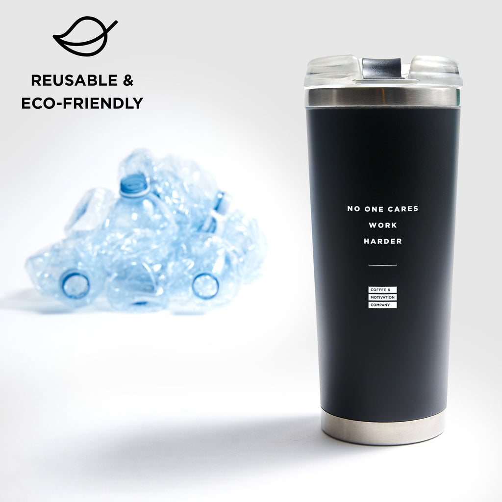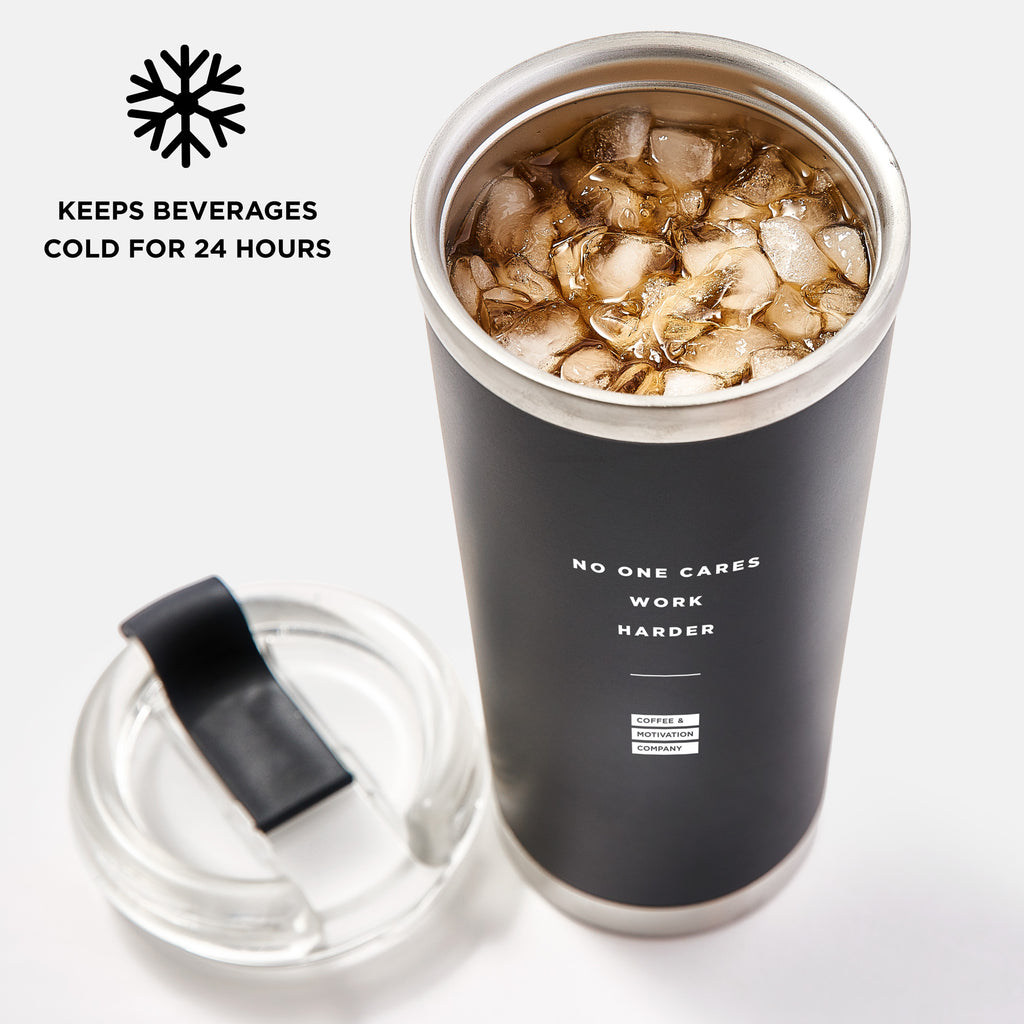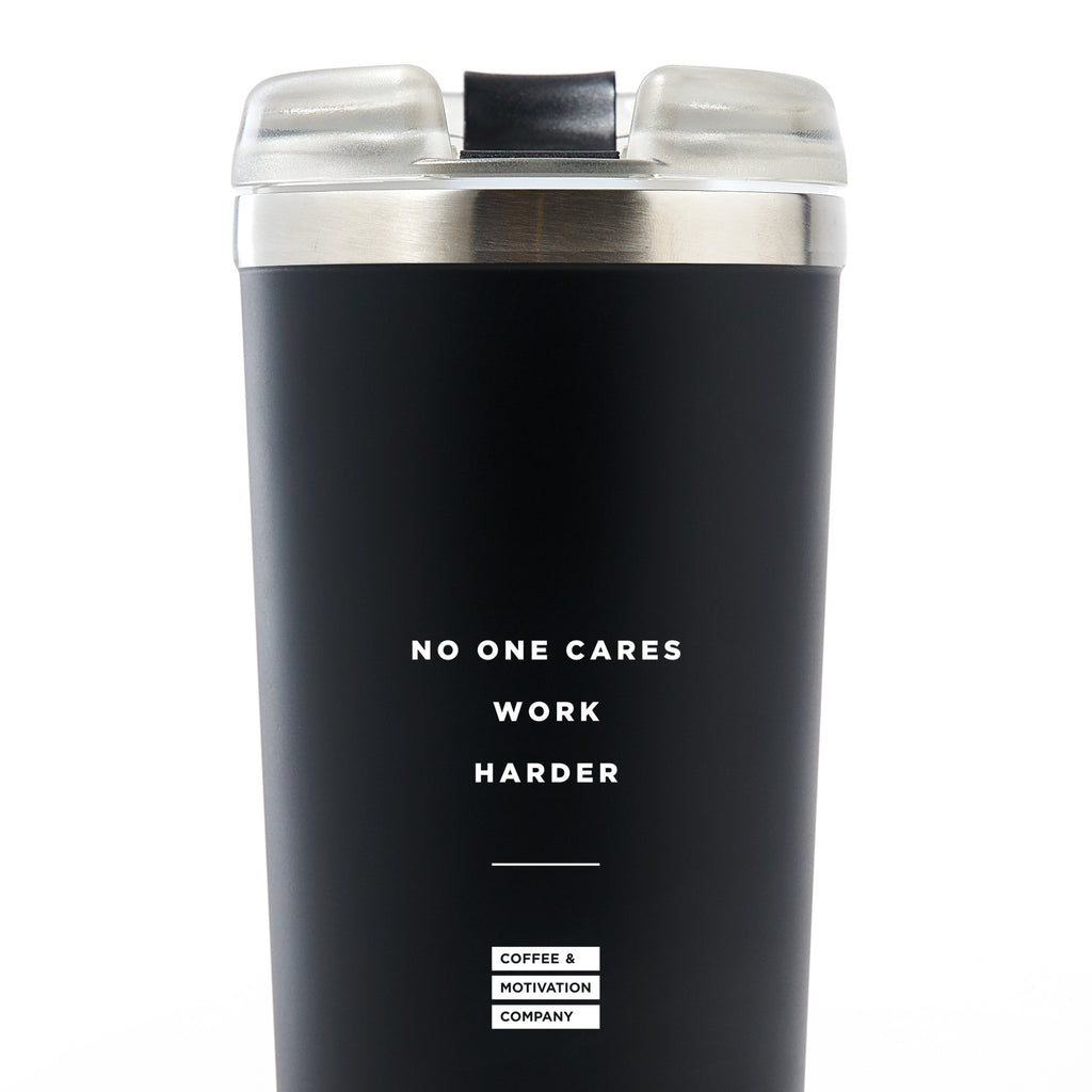 - Get your morning coffee on the go with a dose of motivation with the following quote “No One Cares Work Harder"