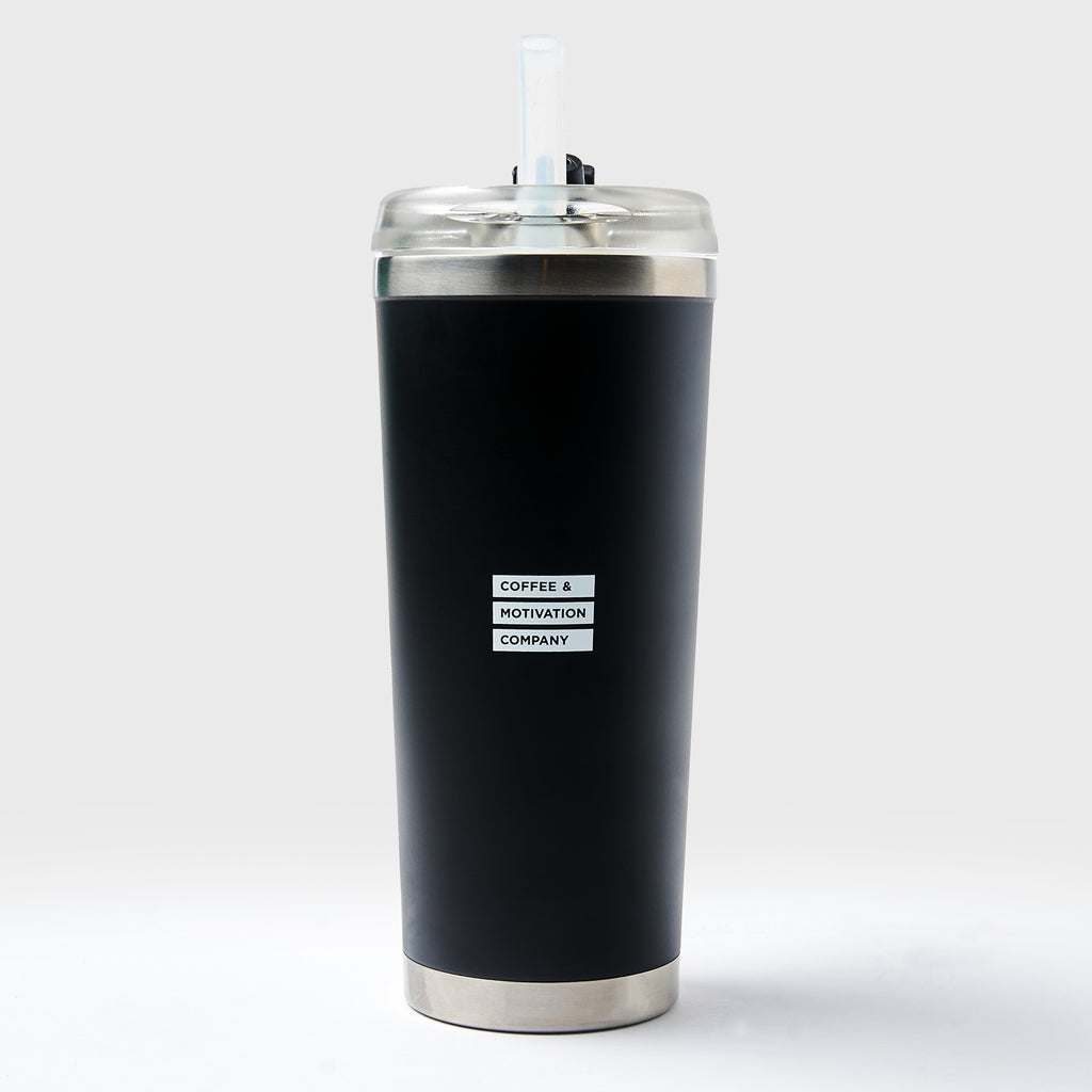 - Stainless steel rim and base, threaded snap fit lid for hot/cold use and flexible wide silicone straw