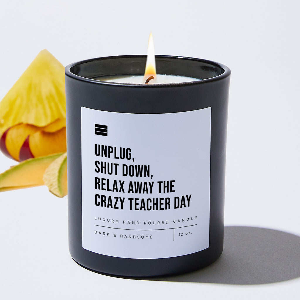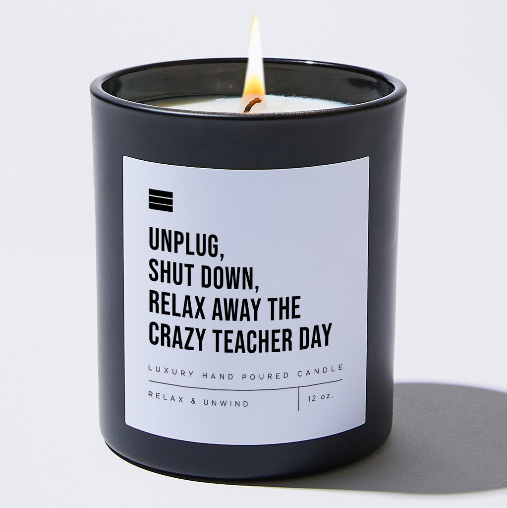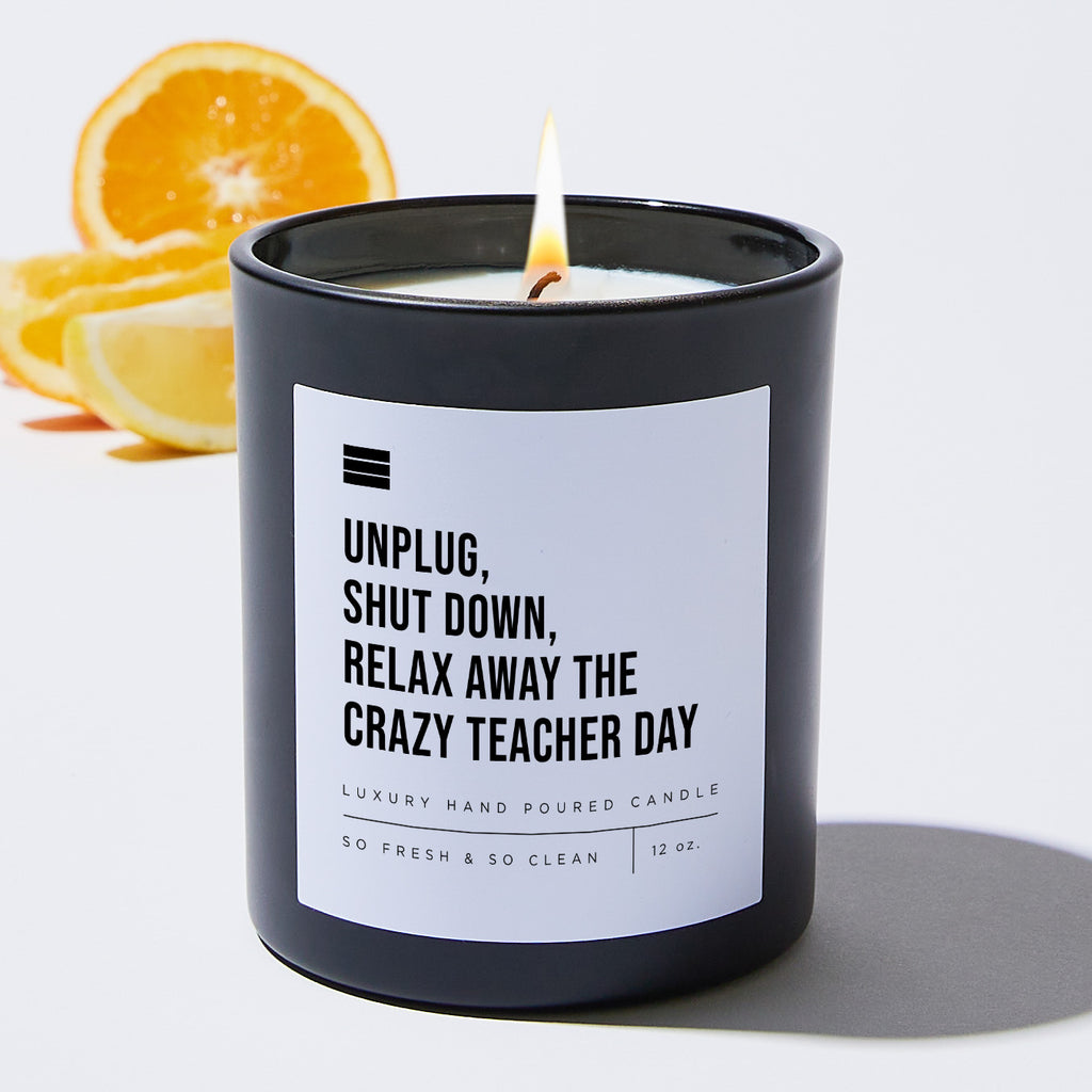 Unplug, Shut Down, Relax Away The Crazy Teacher Day - Black Luxury Candle 62 Hours