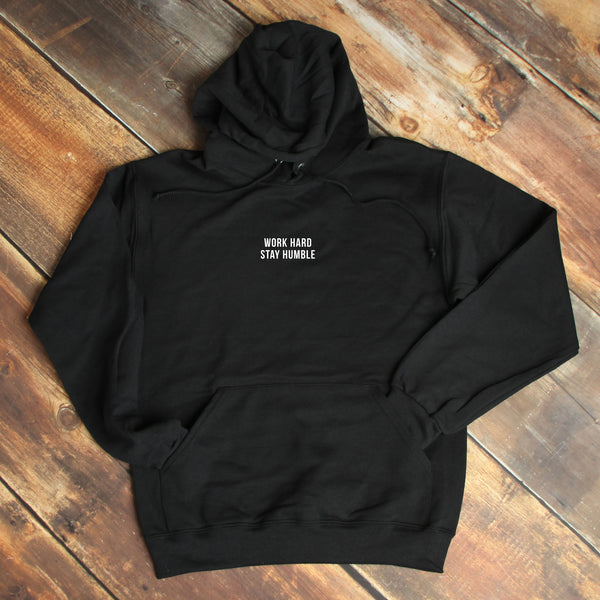 Our Motivational Black Pullover Hoodie is made with soft, mid weight fleece and generous fit for comfort. Features a jersey lined hood, heavy gauge drawcord with metal eyelets and 1x1 ribbing at cuffs and waistband.